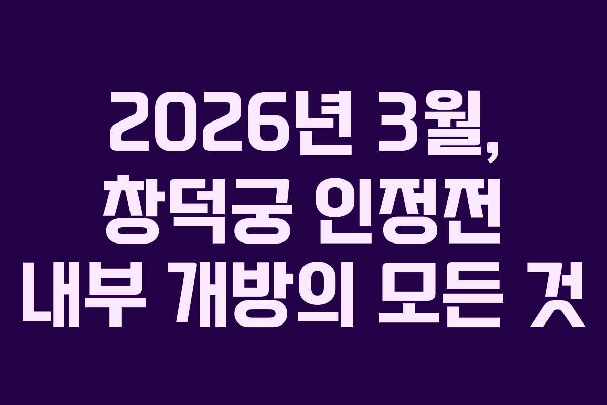 2026년 3월, 서울의 창덕궁 인정전이 특별히 개방될 예정입니다. 이 기회를 통해 조선 왕실의 역사와 건축을 직접 체험할 수 있는 소중한 시간이 될 것입니다. 이번 개방 기간은 3월 4일부터 29일까지로 정해져 있으며, 그동안의 역사적 의미와 관람 방법, 주의사항을 체계적으로 정리해 보겠습니다.
