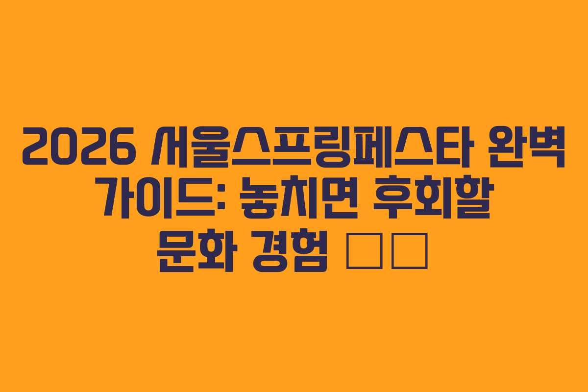 2026년 서울스프링페스타는 서울의 문화와 예술을 만끽할 수 있는 절호의 기회입니다. 서울특별시가 주최하는 이 축제는 K-문화의 중심지인 서울에서 다양한 공연과 행사를 통해 다채로운 경험을 제공합니다. 이 가이드는 2026년 기준으로 업데이트된 정보와 함께 축제의 주요 프로그램을 소개합니다.