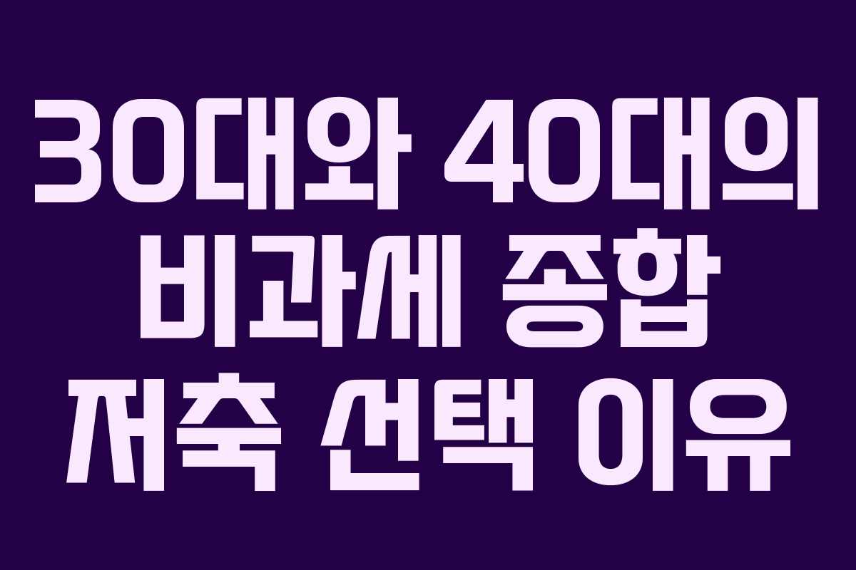 비과세 종합 저축은 많은 사람들이 관심을 가지는 금융 상품입니다. 특히 30대와 40대가 이 상품에 주목하는 이유는 무엇인지 살펴보겠습니다.
