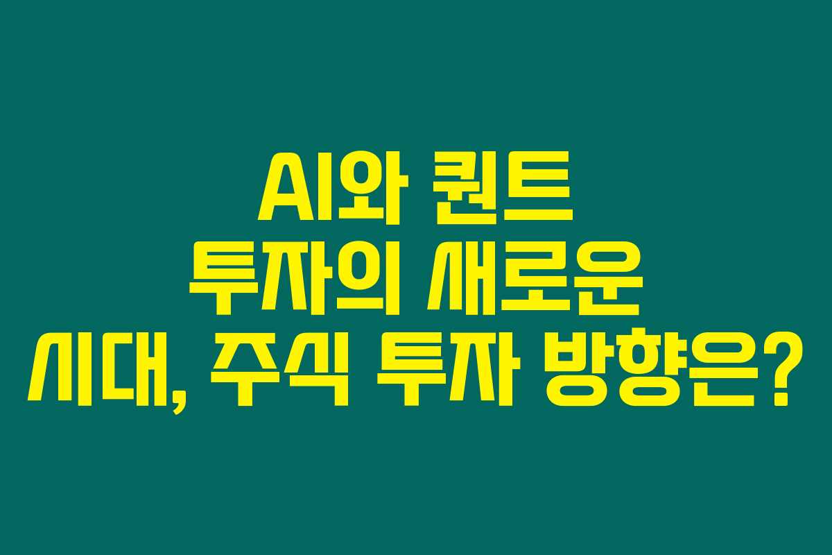 AI와 퀀트 투자의 새로운 시대, 주식 투자 방향은?