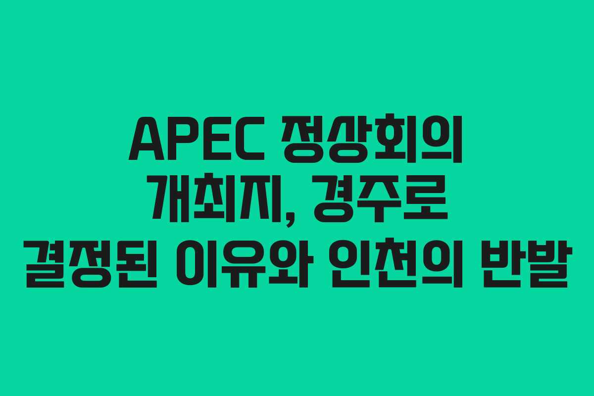2025년 아시아태평양경제협력체(APEC) 정상회의의 개최지가 경상북도 경주시로 결정되었습니다. 그러나 인천광역시는 이 결정에 대해 강한 유감을 표명하며 재논의를 촉구하고 있습니다.
