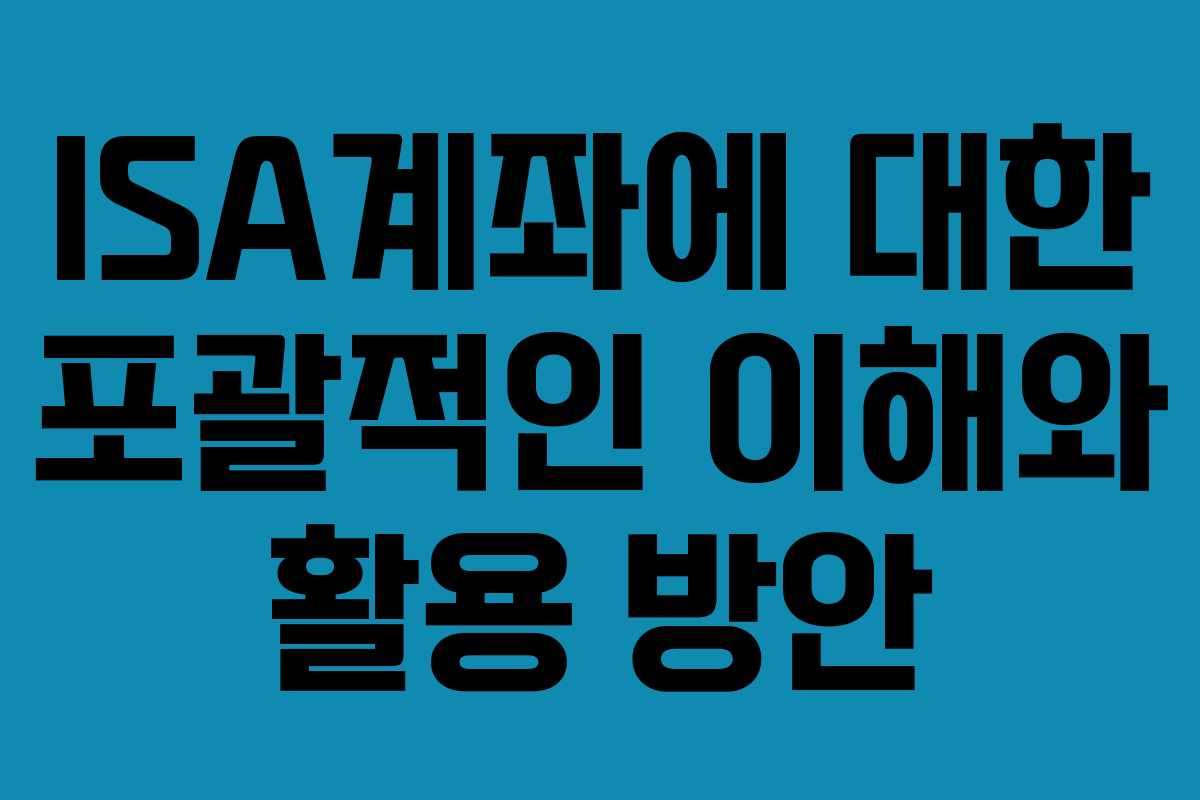 마무리하며, ISA계좌는 투자자에게 많은 기회를 제공하는 유용한 금융 도구입니다. 2026년을 기준으로 한 최신 정보를 바탕으로, 개인의 상황에 맞게 활용한다면 큰 혜택을 누릴 수 있을 것입니다. 지속적으로 학습하고 전략을 세워 보다 나은 금융 생활을 이어가시길 바랍니다.