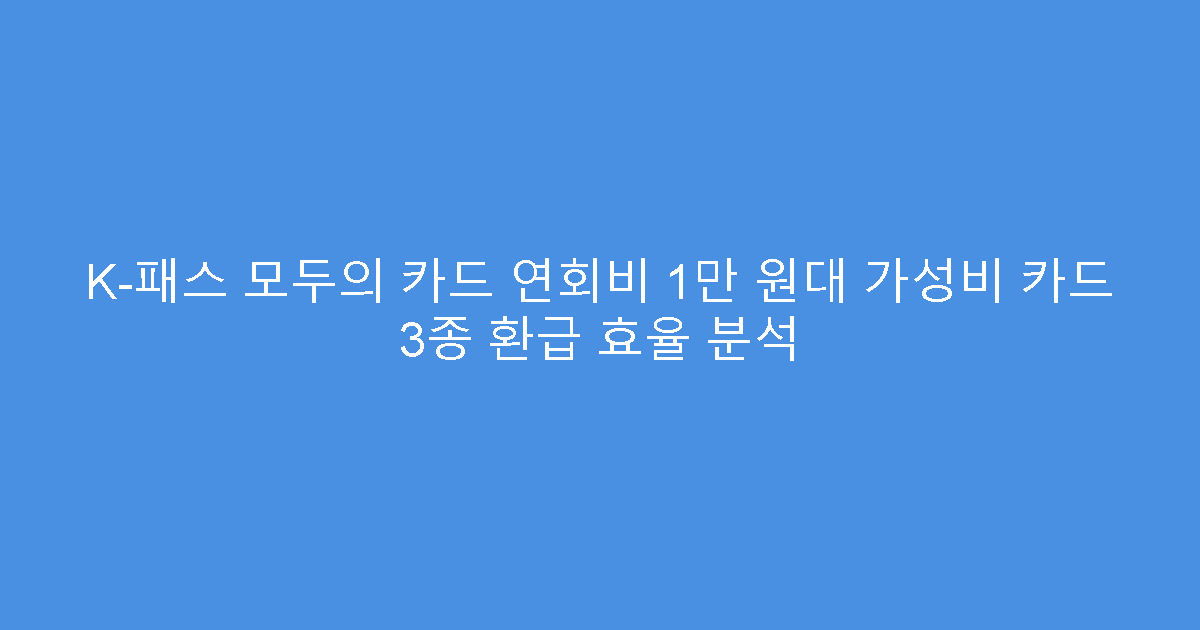 🔍 실무자 관점에서 본 K-패스 모두의 카드 연회비 1만 원대 가성비 카드 3종 환급 효율 분석 총정리