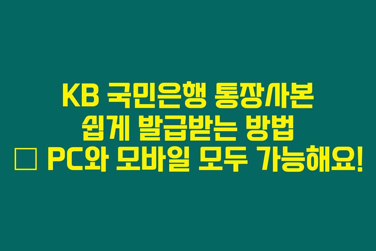 이렇게 해서 KB 국민은행 통장사본을 PC와 모바일에서 쉽게 발급받는 방법에 대해 알아보았어요. 금융 거래 시 필수적인 서류인 통장사본, 안전하게 발급받고 활용하세요. 더 궁금한 점이 있으시면 언제든지 댓글로 남겨 주세요!