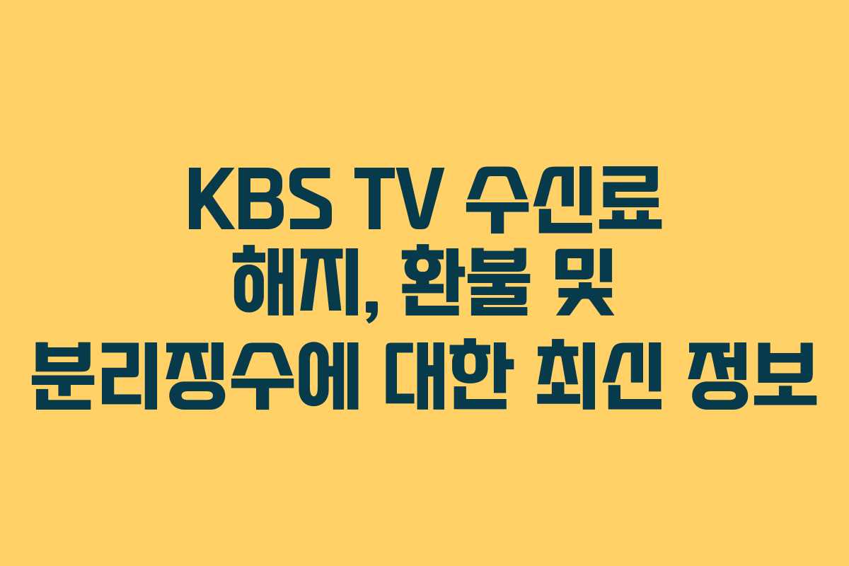 KBS TV 수신료와 관련된 정보는 많은 사람들에게 필수적인 사항입니다. 본 글에서는 KBS TV 수신료의 해지 절차, 환불 정책, 그리고 분리징수에 대해 2026년 기준으로 구체적으로 설명하겠습니다.