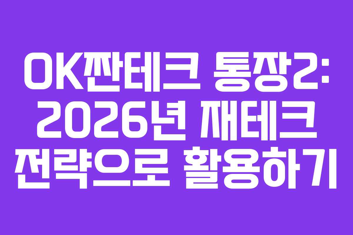 - OK짠테크 통장2 활용을 위한 실전 가이드
