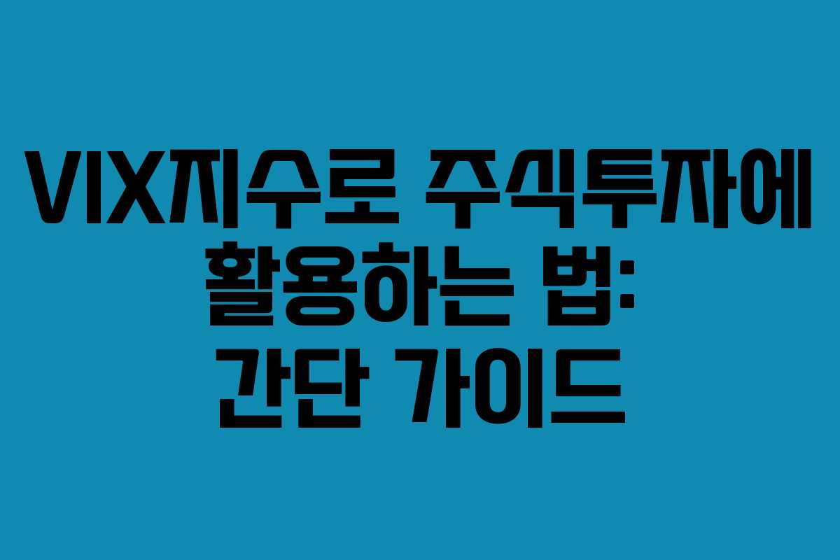 VIX지수로 주식투자에 활용하는 법: 간단 가이드